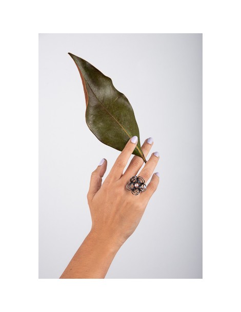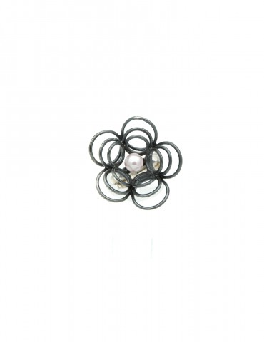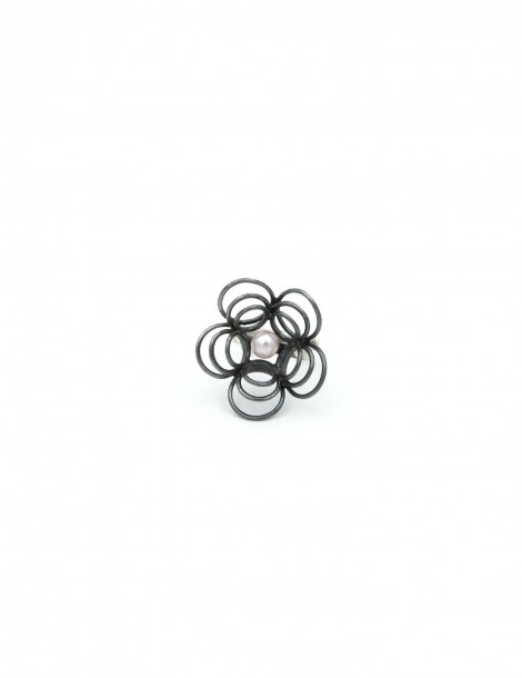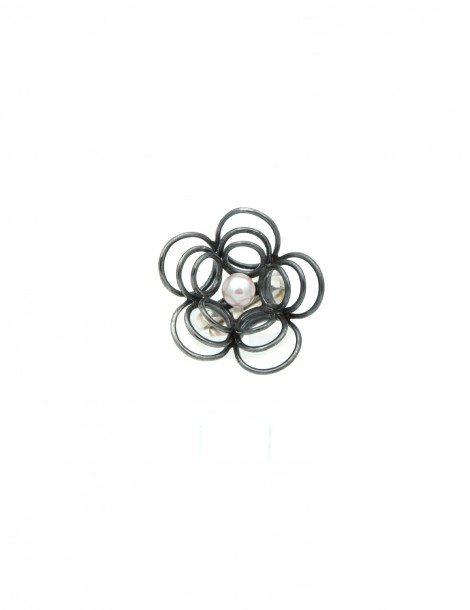 Aσημένιο (925) Δαχτυλίδι με ρόζ μαργαριτάρι του γλυκού νερού, θέμα το λουλούδι και οξειδωμένα μαύρα σημεία. Ανοικτή γάμπα που δινει ευελιξία σε νούμερο.