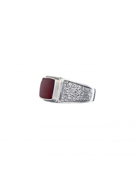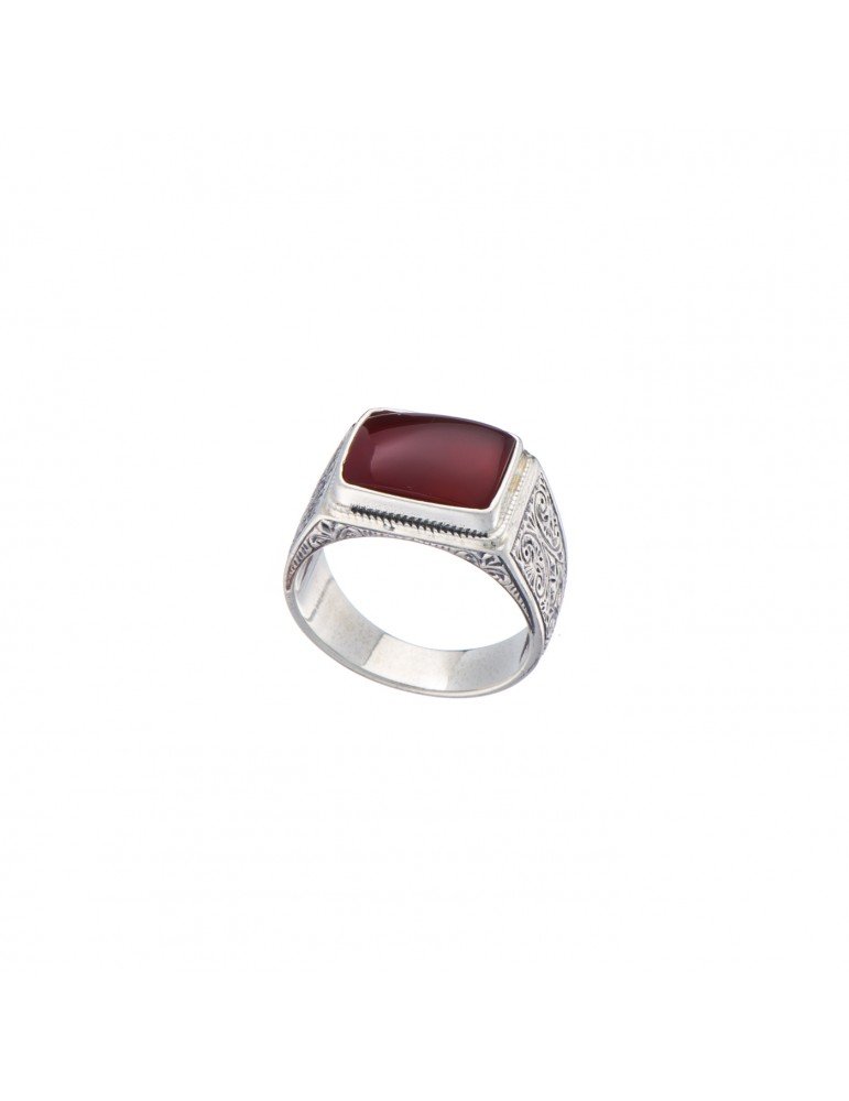 Ασημένιο Δαχτυλίδι με ημιπολύτιμο λίθο (Κορνεόλη). Βιντατζ αισθητική. Δημιουργία της γνωστής οικογένειας χειροποίητων κοσμημάτων GEROHRISTO. Νούμερο 62,5,