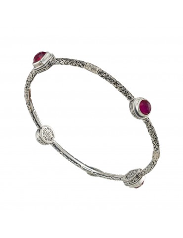 Ασημένιο Βυζαντινό Βραχιόλ ι(ασήμι 925) με 4 ντουμπλέτες πέτρες. Βυζαντινό ύφος και ασθητική. Το κόσμημα ειναι δημιουργημένο απο την γνωστή οικογένεια GEROCHRISTO που δραστηριοποείται στο τομέα του χειροποίητου κοσμήματος.