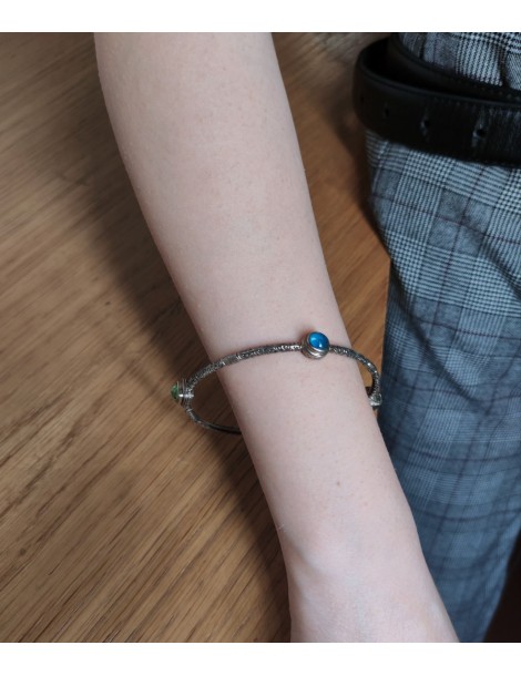 Ασημένιο Βυζαντινό Βραχιόλι με 4 ντουμπλέτες πέτρες (Πράσινη Τυρκουάζ, Απατίτης, Ρουμπίνι, Αμέθυστος σε συνδυασμό με την Κουάρτζ σε κάθε πετραδάκι. Βυζαντινό ύφος και ασθητική.