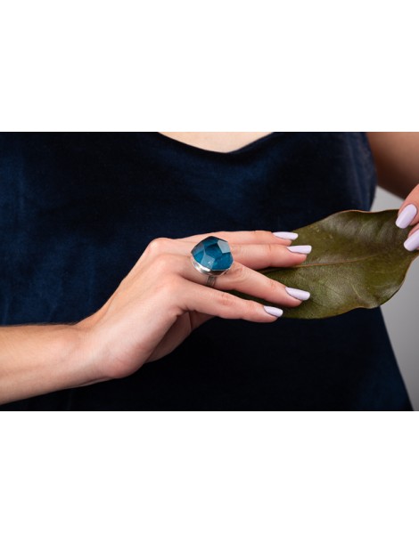 Ασημένιο (ασήμι 925) Δαχτυλίδι με ντουμπλέτα πέτρα (Απατίτης και Κουάρτζ). Δυνατότητα προσθαφαίρεσης για το νούμερο. Δημιουργία της Στέλλα Δεληγιάννη.