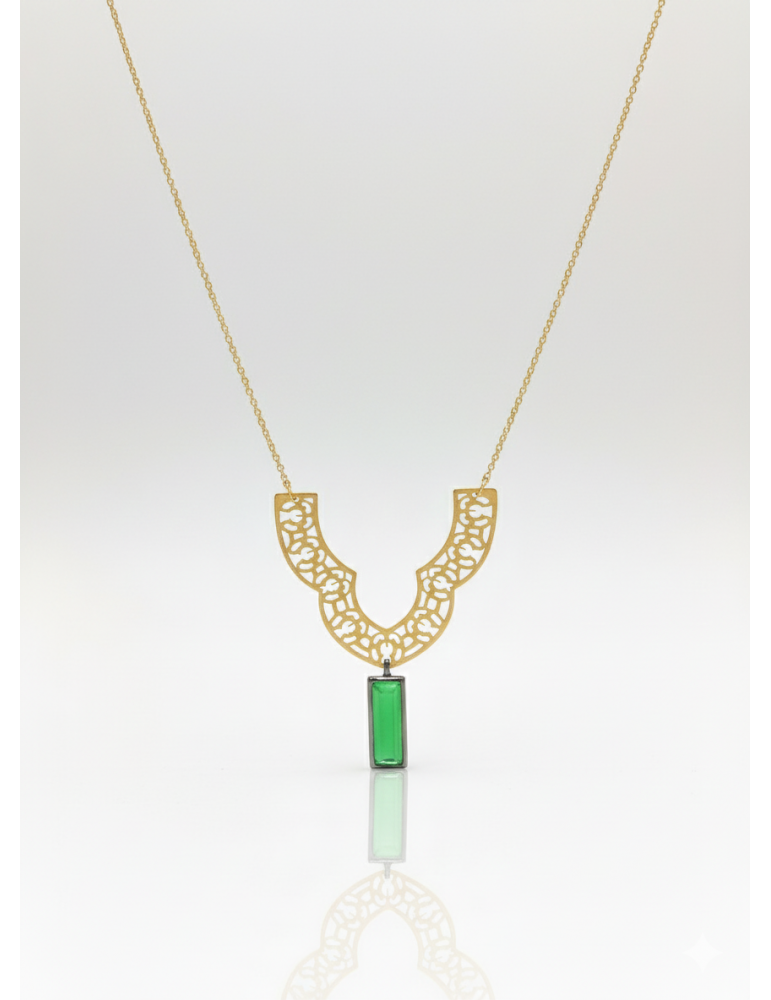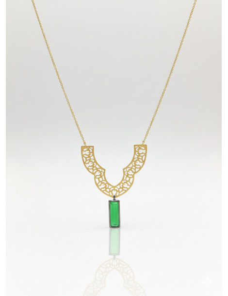 Ασημένιο επίχρυσο Μενταγιόν (ασήμι 925) με ντουμπλέτα ημιπολύτιμο Πέτρα (Διοπτάσιο και Κουάρτζ). Αλυσίδα 45 εκ. συν 5 εκ. δυνατότητα προσθαφαίρεσης.