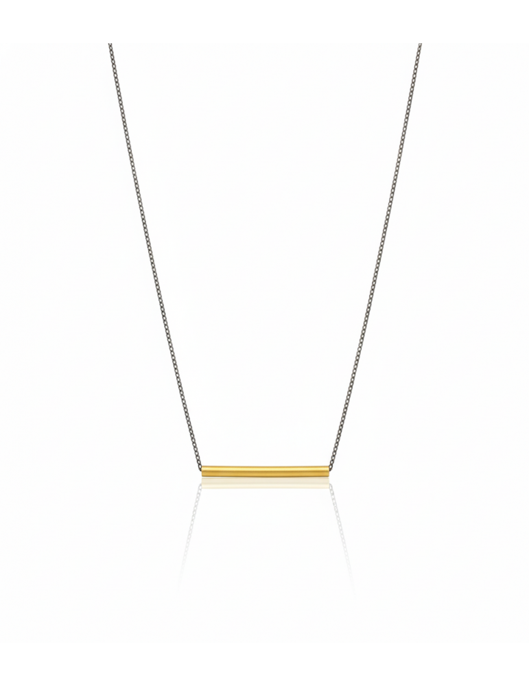 Κεντρικό ασημένιο επίχρυσο στοιχείο και αλυσίδα ασημένα οξειδωμένη 42 εκατοστών. Ασήμι 925.