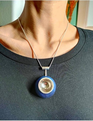 Μοντέρνο Μενταγιόν φτιαγμένο απο ασήμι και μπλέ τιτάνιο. Κατασκευάστρια Αγγελική Λίαου.