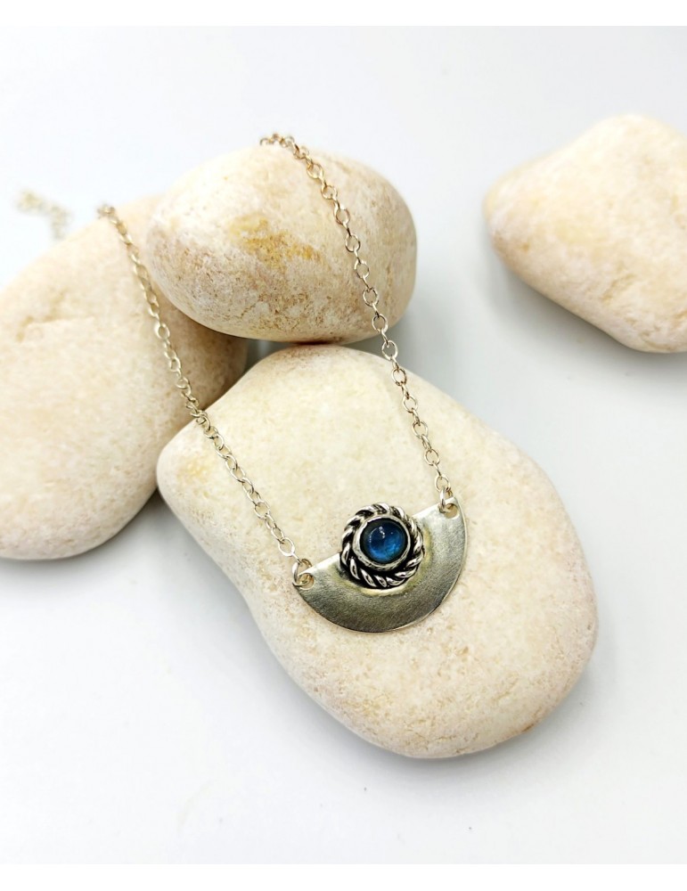 Ασημένιο Μενταγιόν με Πέτρα (Λαβραδορίτης). Μοντέρνα γεωμετρική σχεδίαση.