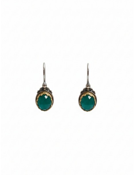 Ασημένια Σκουλαρίκια με ντουμπλέτα πέτρα (Mαλαχίτης και Κουάρτζ).