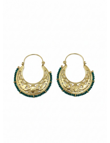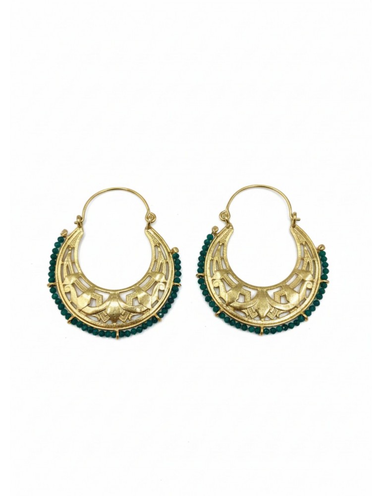 Ασημένια Επίχρυσα Σκουλαρίκια με μικρά πράσινα πετραδάκια.
