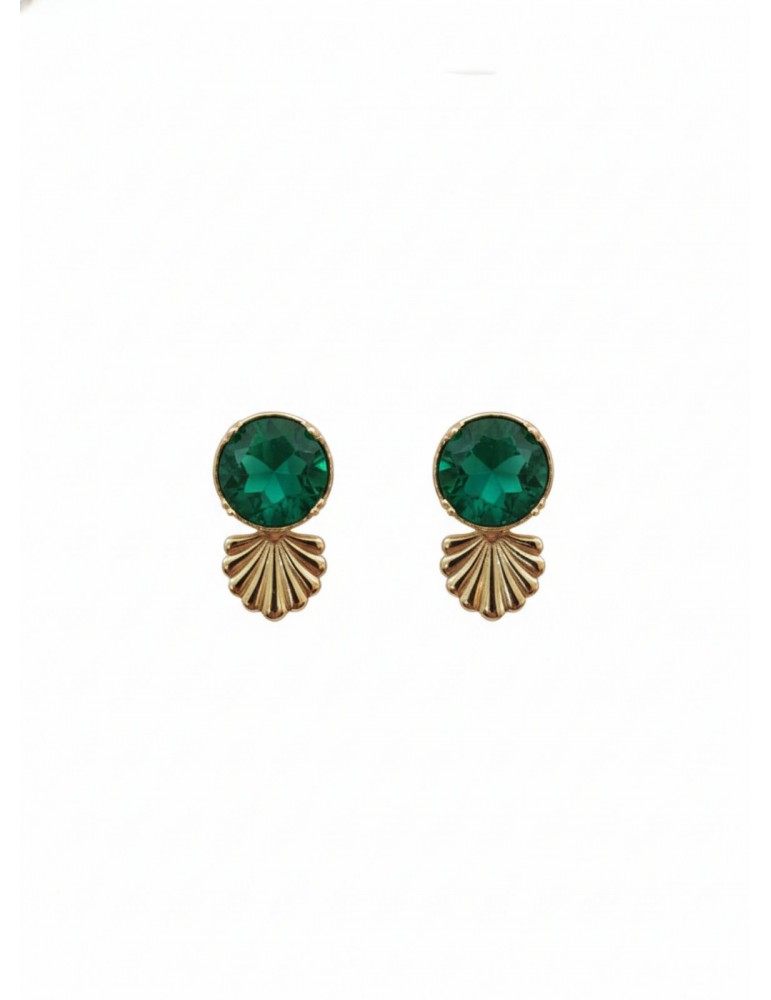 Ασημένια επίχρυσα σκουλαρίκια με ορυκτό πράσινο Κρύσταλλο.