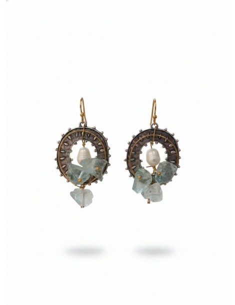 Εναλλακτικά Σκουλαρίκια με συνθετικές πέτρες (Άκουα) και συνθετικά Μαργαριτάρια.