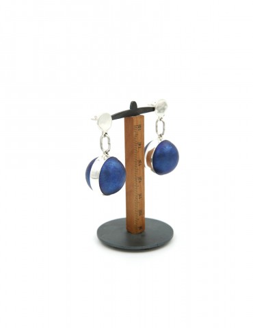Σκουλαρίκια απο ασήμι 925 και τιτάνιο χρώματος μπλε. Γεωμετρική μοντέρνα σχεδίαση. Κρεμαστά στο αυτί.