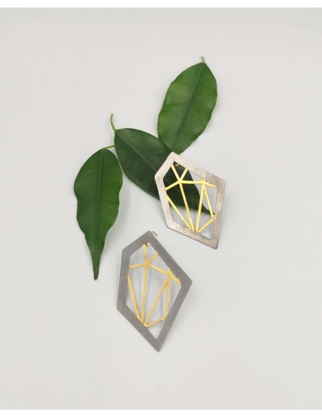 Μοντέρνα γεωμετρικά Σκουλαρίκια απο Μπρούντζο με μαύρη και χρυσή επιμετάλωση. Kαρφωτά στο αυτι και το καρφάκι είναι απο ασήμι 925.