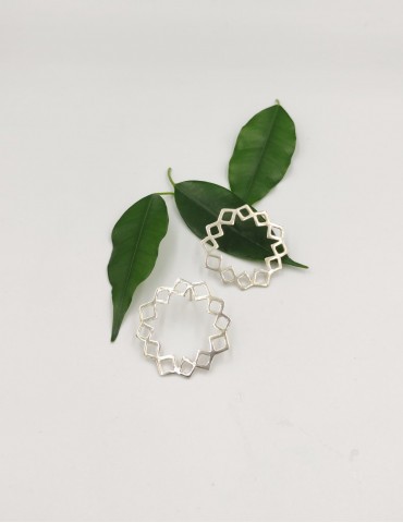 Ασημένια μοντέρνα Σκουλαρίκια, με γεωμετρικό προορισμό καθώς έχει στρογγυλή τροχιά αποτελούμενο απο πολλά τετραγωνάκια. Καθημερινό κόσμημα απο την Έλενα Βεζύρογλου.