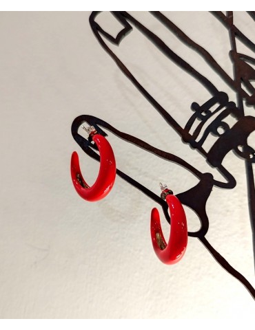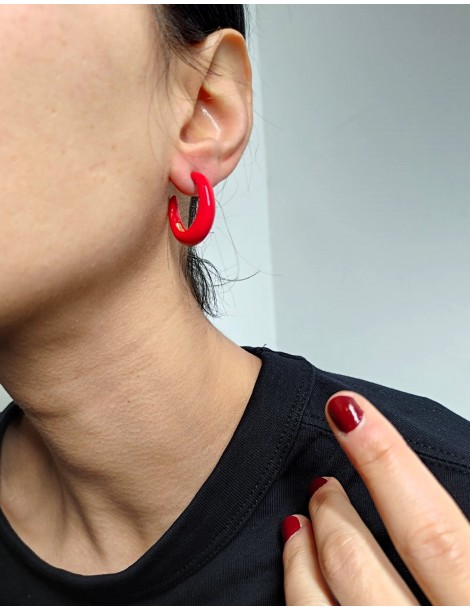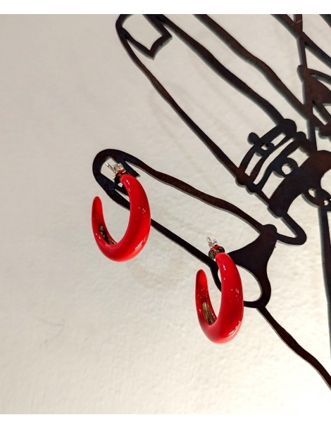 Σκουλαρίκια (κρίκοι) απο ορείχαλκο με κόκκινο Σμάλτο. Κόσμημα καθημερινό που σας φτιάχνει την ψυχολογία. Πολύ μοντέρνα δημιουργία της Κυριακής Βέρρου.