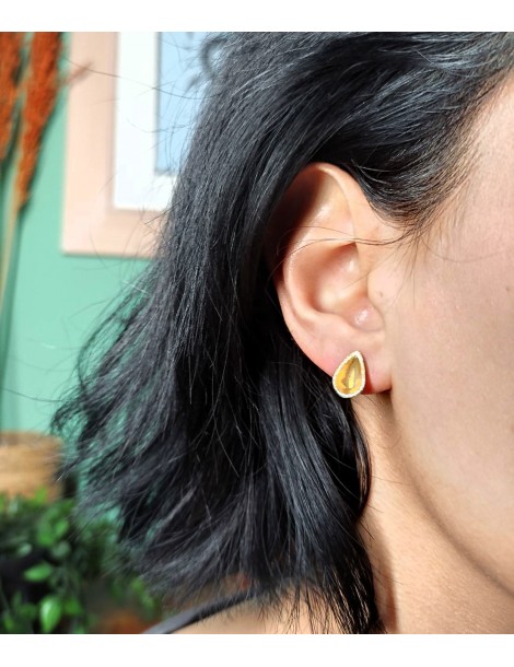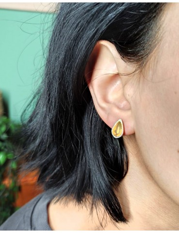 Ασήμι 925, επιχρύσωμα 24 καρατίων και σκόνη ζιργκόν. Καρφωτά στο αυτί.