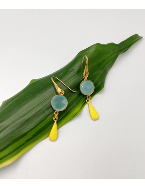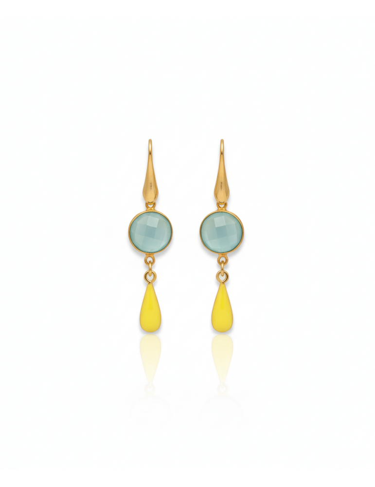Ασημένια Σκουλαρίκια με κίτρινο Σμάλτο και γαλάζιο ορυκτό κρύσταλλο. Μοντέρνα σχεδίαση, συνίσταται και για καθημερινή χρήση αλλα και για τις εξόδους.