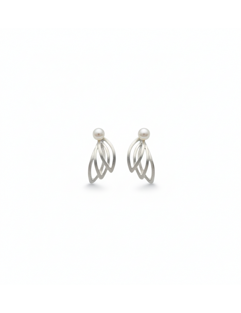 Ασημένια Σκουλαρίκια Με λευκά Μαργαριτάρια του γλυκού νερού. Μοντέρνα δημιουργία της κατασκευάστριας χειροποίητου κοσμήματος Μαρίας Ψαριανού