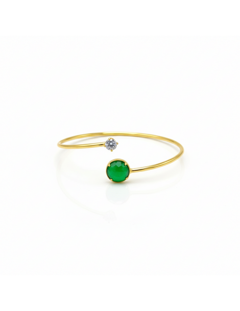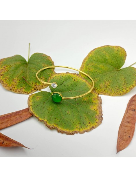 Ασημένιο Επίχρυσο Βραχιόλι με πράσινο ορυκτό Κρύσταλο και με ορυκτό ζιργκόν. Μοντέρνα σχεδίαση. Καθημερινή χρήση και όχι μόνο.