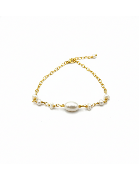 Ασημένιο Επίχρυσο Βραχιόλι με Μαργαριτάρια.