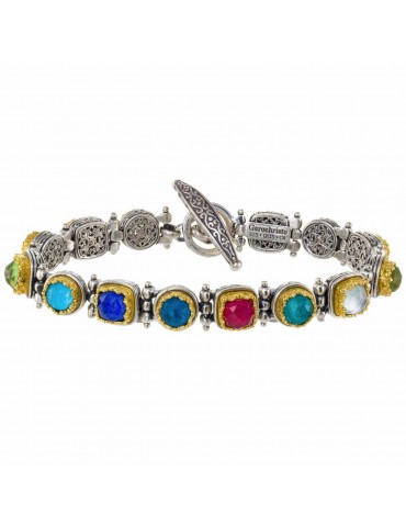 Ασημένιο Βραχιόλι (ασήμι 925) με 14 ημιπολύτιμα πετραδάκια (ντουμπλέτες). Βυζαντινής αισθητικης. Το κόσμημα ειναι δημιουργημένο απο την γνωστή οικογένεια GEROCHRISTO που δραστηριοποείται στο τομέα του χειροποίητου κοσμήματος.
