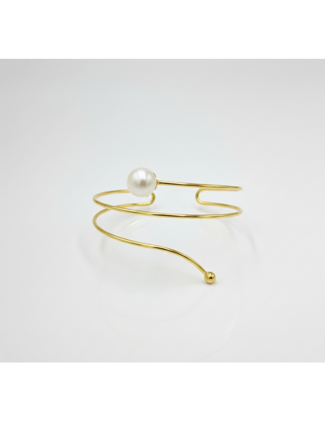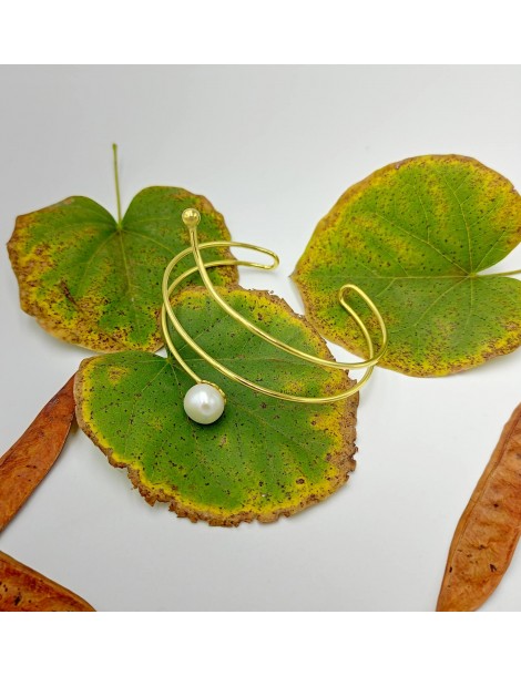 Silver Goldplated Bracelet with white freshwater Pearl. Modern design.