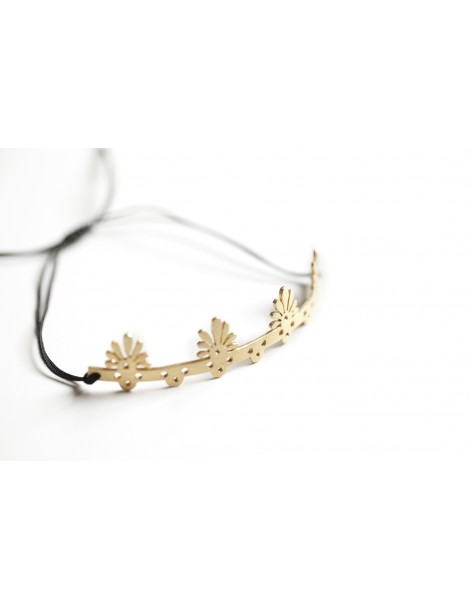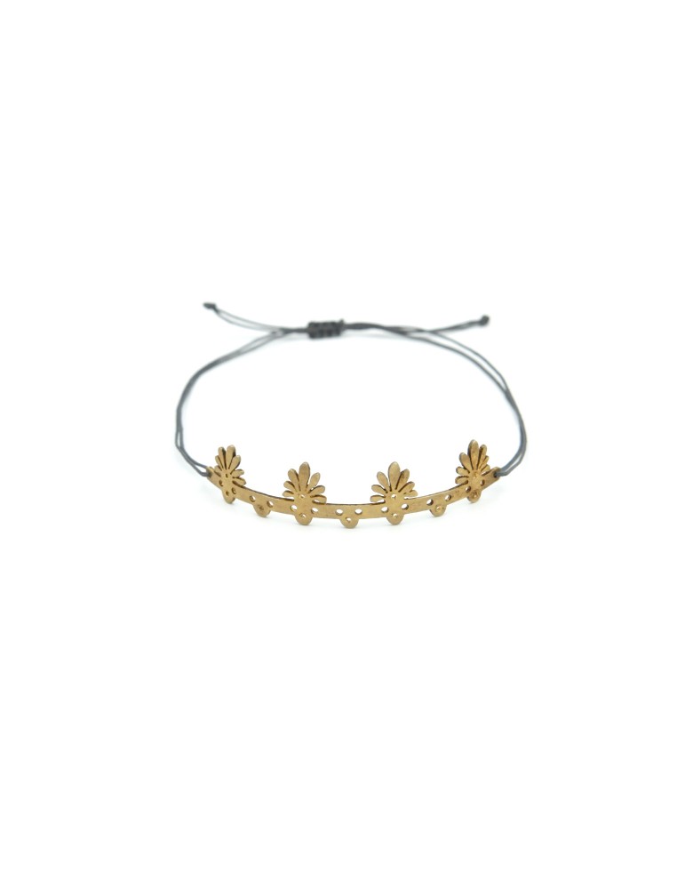 Silver gold-plated Bracelet. Royal flower theme. Grey green string and adjustable.