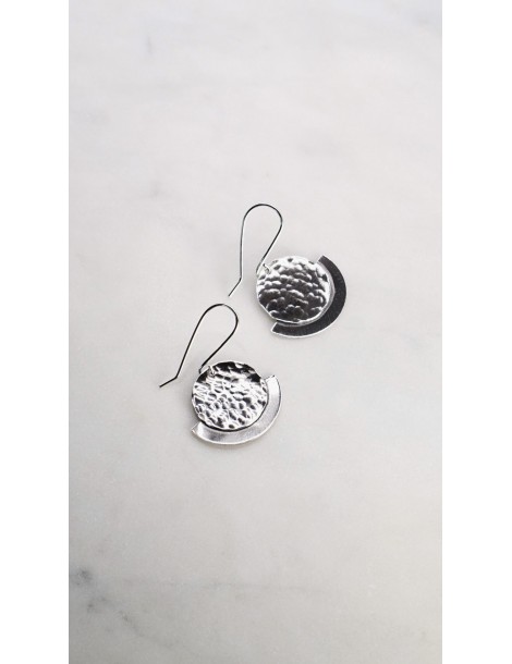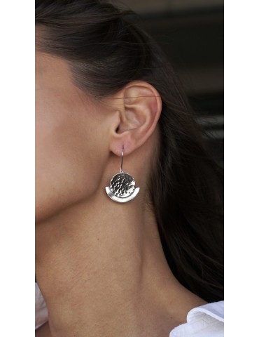 Silver Hamered Earrings. Modern design by Kallisti. Jewel combined easily with literally everything and you can wear it every hour of the day.
