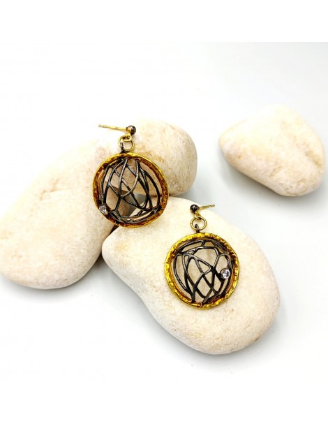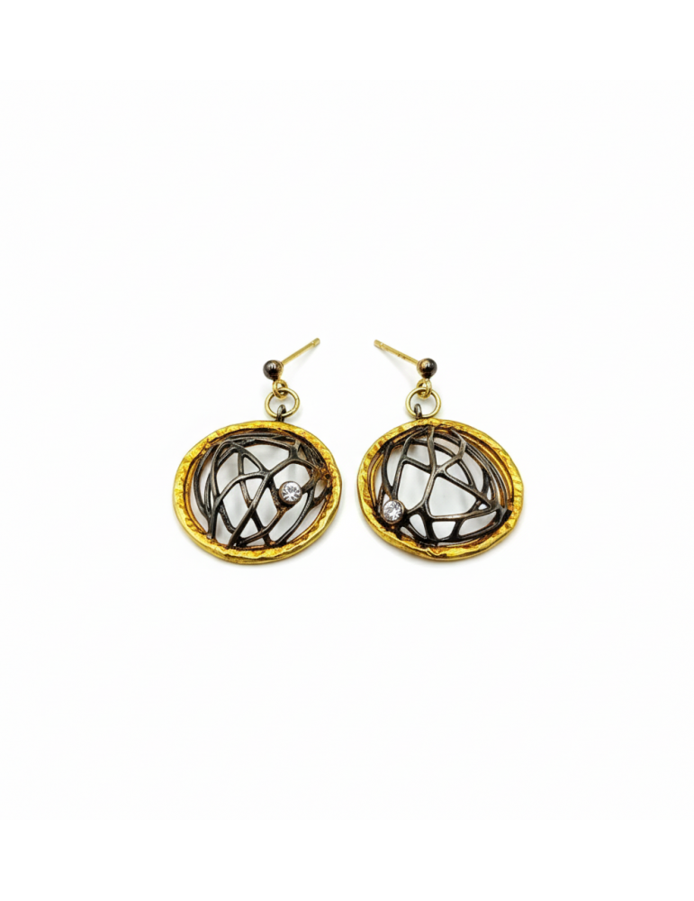 Silve gold and black plated Earrings with minera; zircon. Modern geometrical design.