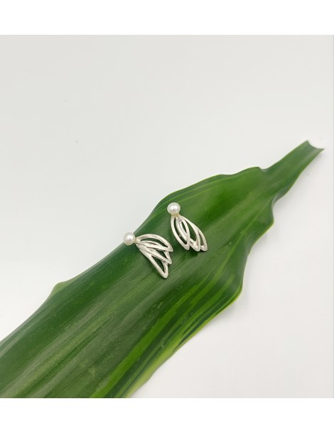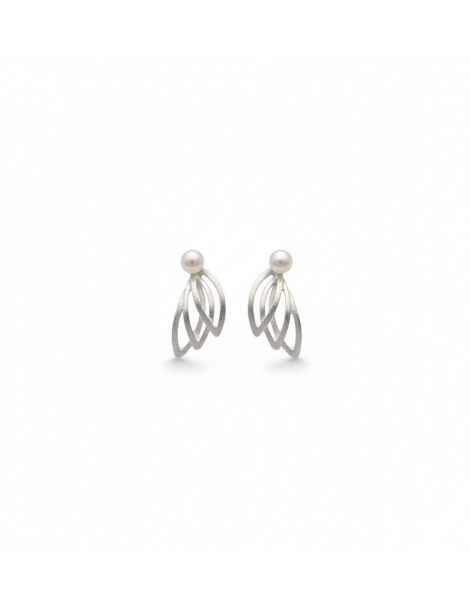 Silver Earrings with white freshwater Pearls. A modern creation by Maria Psarianou.