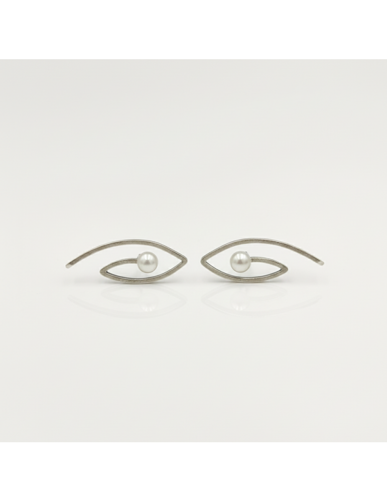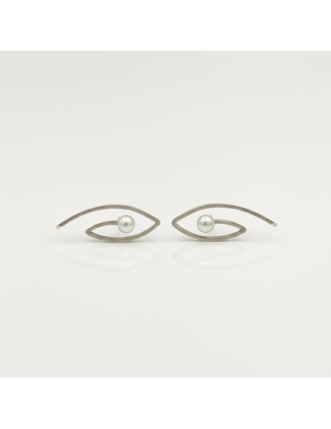 Silver Earrings with white freshwater Pearls. A modern creation by Maria Psarianou.