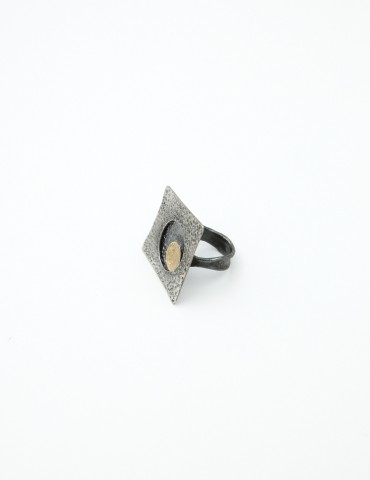 Silver-golden ring. Silver 925- Gold 18k. Black plated parts. Adjustable in numbers.