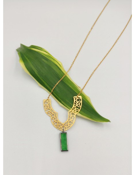 Silver goldplated Necklace with doublet stone (Quartz and Dioptase). Vintage creation made by Elsa Mouzaki.