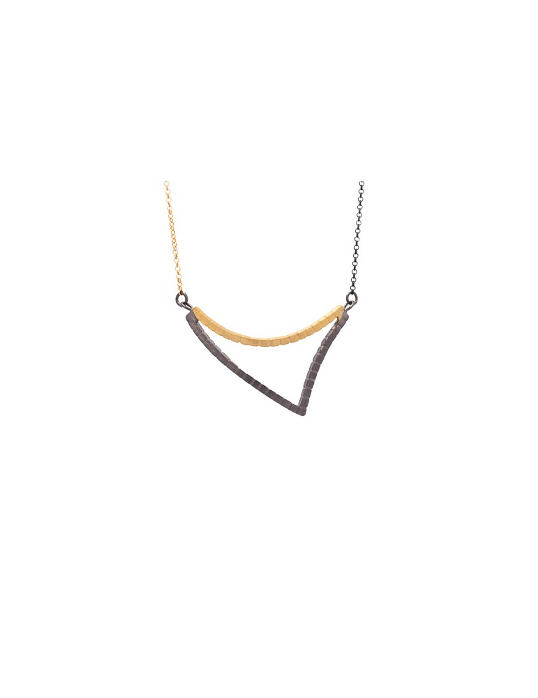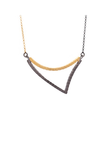 Silver black and gold plated Necklace. Modern Design. 42cm. chain.