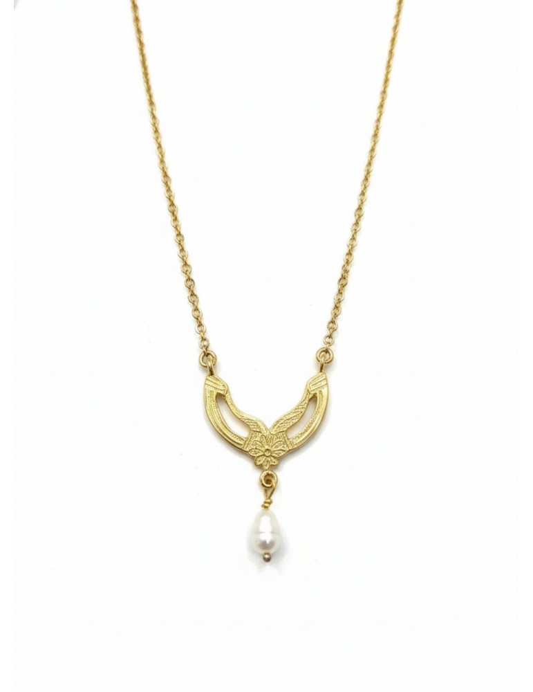 Silver Goldplated Necklace with one syntheric pearl. Vintage creation made by Nikolas Sidiropoulos