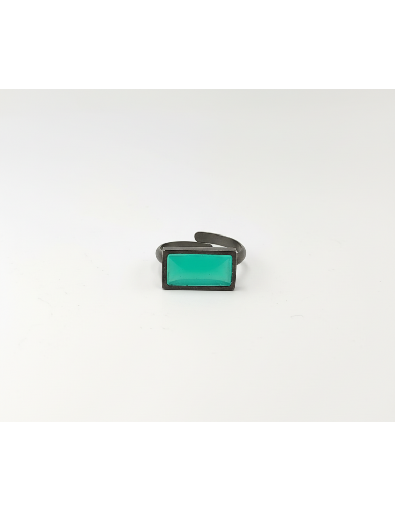 Silver Goldplated Ring with greenblue enamel. Modern geometrical design. Daily Use.