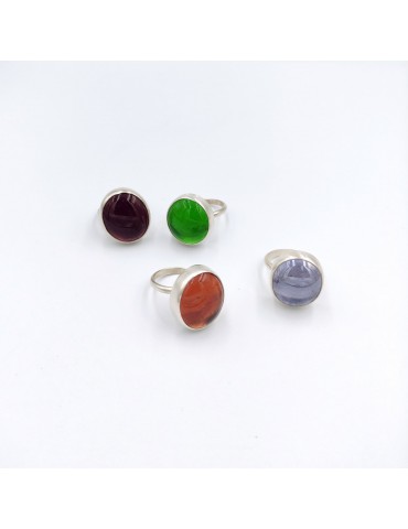 Silver Ring With Colorful Glass.